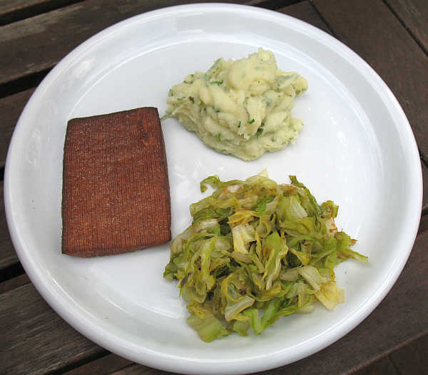 ...und danach gebratenen Spitzkohl (eigene Ernte), Kartoffelpü und Räuchertofu.Aella: Ich habe mir so fest vorgenommen, den Flammkuchen nach deinem Rezept endlich auszuprobieren. Aber durch den Garten hat man jetzt jeden Tag neue Essenszwänge. Ich hoffe aber, ich schaffe es in den nächsten Tagen. Der von heute sieht jedenfalls wieder sehr lecker aus.