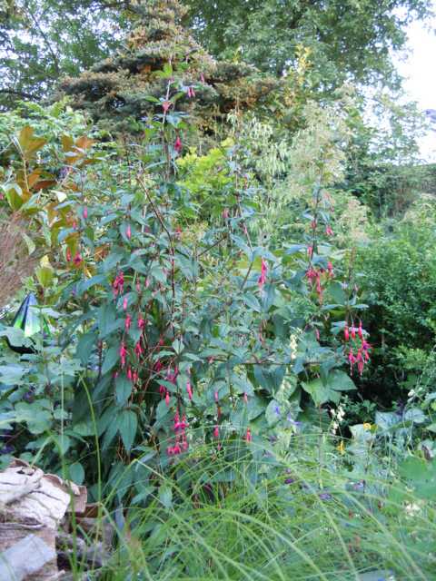 Fuchsia regia ssp. reitzii, meine beste Freilandfuchsie. Mittlerweile schlappt sie aber etwas in der Hitze. Da muss sie durch (Foto von letztem Wochenende)