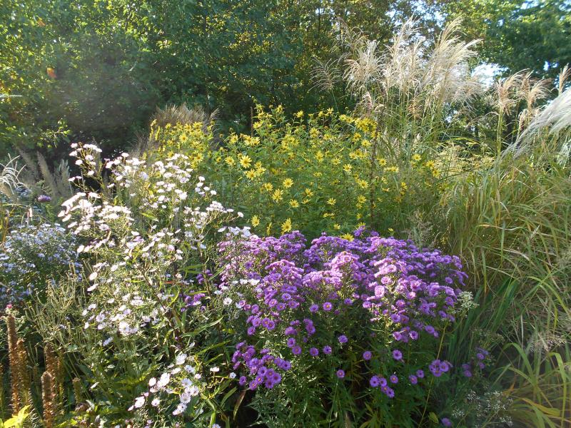 Meine Fotos sind nicht wirklich zum Vorzeigen. Ich habe vor allem versucht, die Hornissen zu fotografieren, mit mässigem Erfolg und sonst ein paar Impressionen mit den vielen Astern. Ich brauche mehr Astern in meinem Garten! Der Garten ist so schön üppig, mit den vielen Blüten, und dann noch bei dem perfekten Herbstsonnenschein.