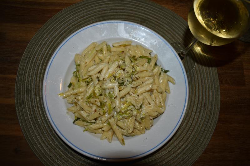mit einem Spritzer Riesling in der Sauce und ein Glas Riesling.