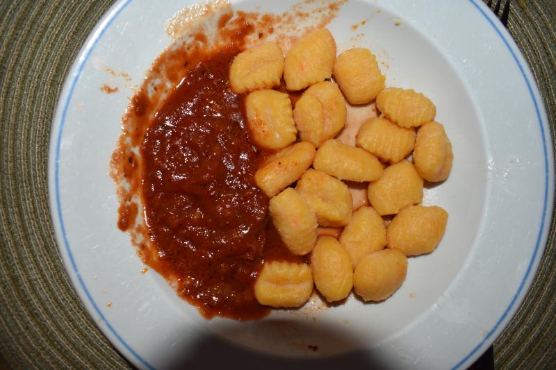Gnocchi, mit einem Teil Süßkartoffeln, mit Tomatensauce
