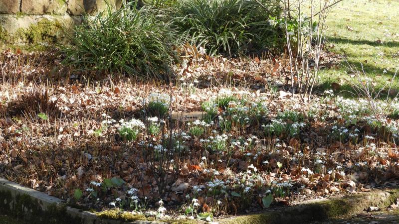 Bei meinen Flore Pleno sind das Jahrzehnte. ;) Vor zwanzig Jahren standen die um den Stamm der kleinen Magnolie, die jetzt nicht mehr ist. Und werden jetzt nach und nach ein bisschen verteilt, vermehren tun sich die ja sehr gut. Wo ich neu angefangen habe Schneeglöckchen zu pflanzen wird das wohl noch Jahre dauern bis zu einem flächigeren Weiss. Muss ich noch viele Löcher stechen, und Loch und Zwiebel und Loch... ;)