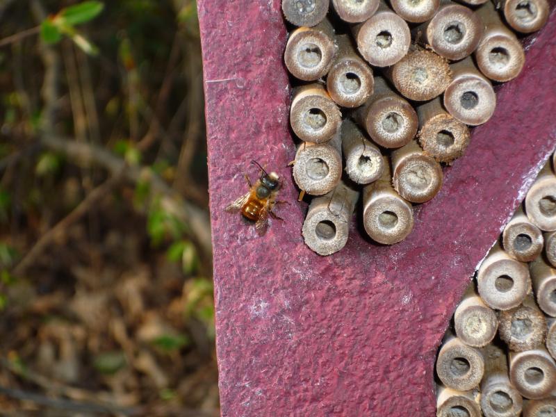 Ja, das ist sie. :) Vielleicht nutzen die Tiere die Stelle, um Baumaterial für Ihre Nester zu sammeln. In Steilwänden nistet O. bicornis übrigens auch. Sie ist nicht besonders wählerisch, wenn es um Niststandort geht. Nur in ebenen Boden habe ich sie nie nistend gesehen.