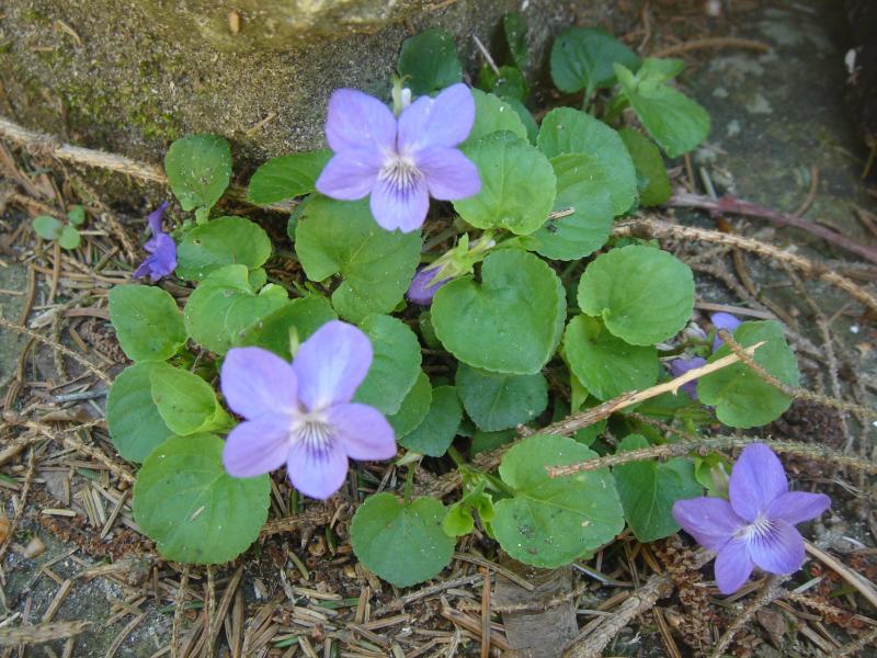 Unser Garten wird zZt von blühenden Kirsch-, Pflaumen-, und Apfelbäumen gepraegt -- aber auch viele kleinere Vertreter mühen sich, hier ein Veilchen, das von irgendwo bei uns im Garten gelandet ist