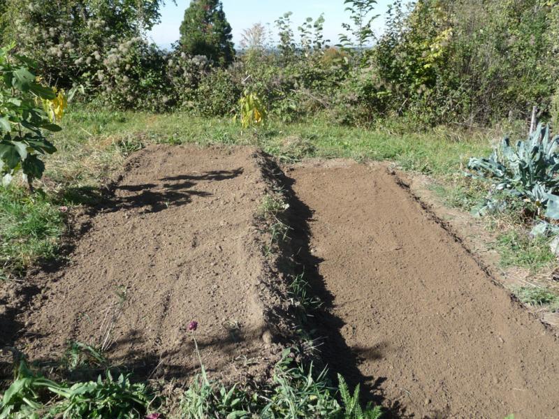 Heute auch noch schnell 4 Reihen Knoblauch und 1 Reihe Schalotten gesetzt (links) - Rechts kommt das gleiche. :)