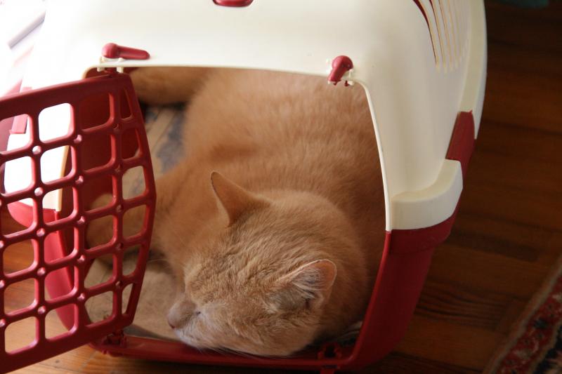 Die zweite ruhige Nacht ist hinter uns. Wie ich aufgewacht bin saß er im Schlafzimmer auf dem kleinen Tischchen und hat mich hypnotisiert angeschaut. Habe dann die Rollos aufgemacht, bin aufs Klo gegangen. Da ging er mit, schaute sich im Bad um. Dann ging ich wieder ins Bett. Er saß daneben. Dann kam er aufs Bett. Ich habe so ein großes Französisches Bett, die andere Seite ist so mit Polsterstoff, weil es ja nicht bezogen ist. Da kam er dann hin, legte sich neben mich und dann wurde er ausgiebig beschmust. Das hat er sichtbar freudig genossen. Dann sind wir aufgestanden, habe ihm was zum fressen gegeben. Er hat mich dann überall hin begleitet, in die Speisekammer, habe ihm dann auch noch die Tür zum Gästezimmer aufgemacht, damit er da auch mal kucken konnte. Er ist ja neugierig, wie halt Katzen sind. Er ist ja schon ca. 7 Jahre alt, schon etwas ruhiger, als so ein Jungspund. Durch das Tierheim ist er jetzt das drinnen sein auch gewöhnt. Wenn er schläft geht er meistens in seine Transportkiste,das wundert mich ja. Aber Katzen sind ja neugierig. Auf alle Fälle ist es interessant mit ihm.