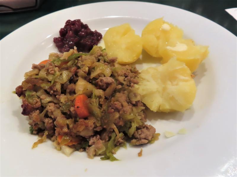 Hier gab es Kaalilitaaliko :D Vermutlich nicht ganz vorschriftsmäßig, weil ich eigentlich auf die Baumschule gewartet habe und es so zwischendurch und in Eile gemacht habe, ohne Überbacken und aus einem frischen Kraut, das sich beim Schmoren stark reduziert hat. War aber trotzdem sehr gut, und die Preiselbeeren möchte ich nicht missen :D Nur Quendulas Takikartoffeln muß ich noch üben :-\