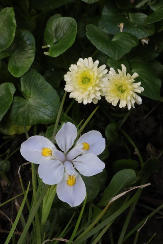 Iris henryi ist wirklich ein Kleinod, hier mit Ficaria verna ´Alba Plena`.