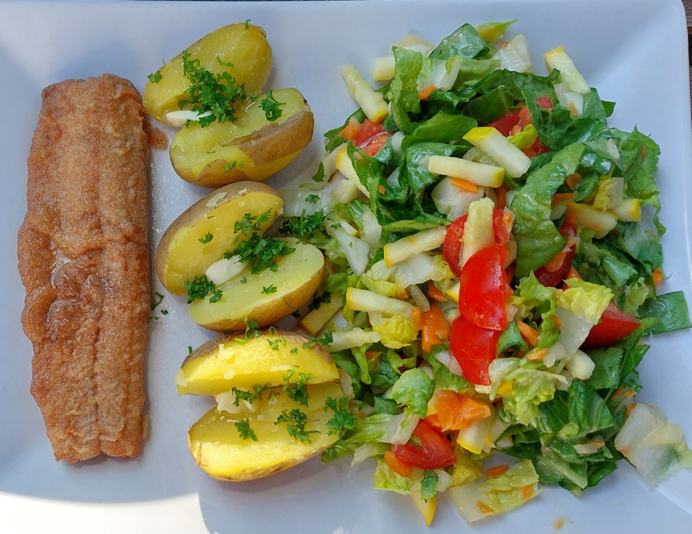 Wir haben auswärts gegessen. Ich hatte einen Salat mit Rinderfiletsreifen und Pfifferlingen gegessen. Eigentlich sollte es ein Wildkräutersalat sein. Seht ihr da was Wildes?
