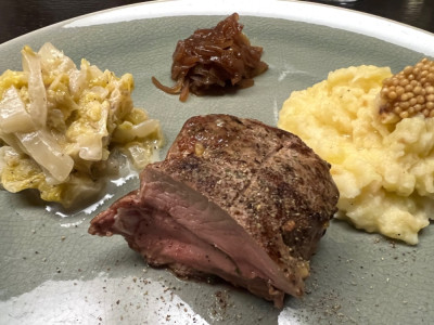 Das Eis war wirklich der Oberhammer! Aber hier muss ich noch ein Foto vom Wildschweinrücken mit Beilagen nachreichen, denn der war auch super!