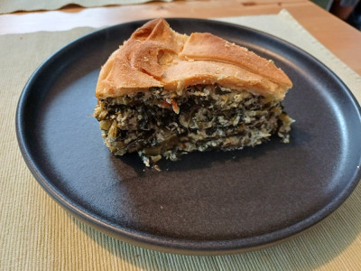 eine Art umgebaute Ostertorte aus Catalogna, Ricotta etc