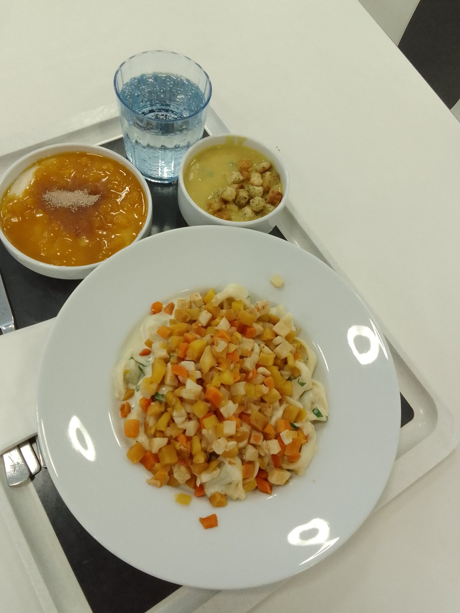 Heute 3-Gänge-Menü ,vegetarisch. In der Siemenskantine