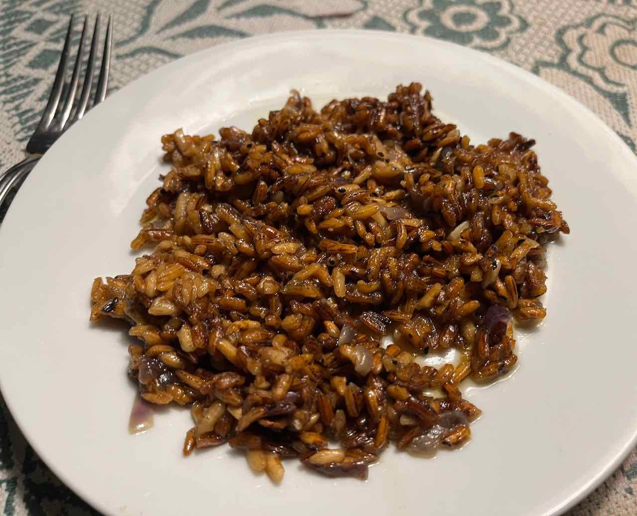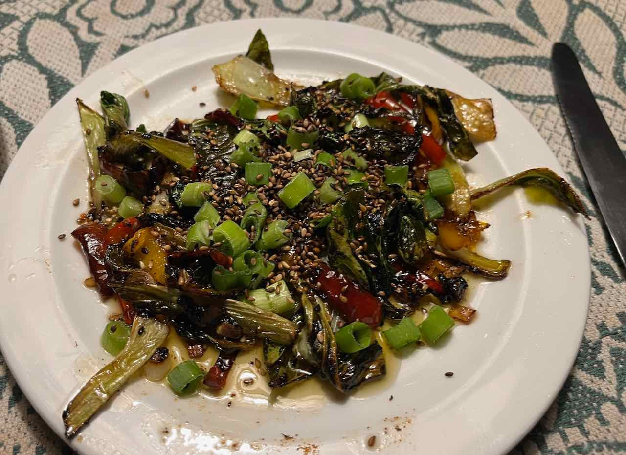 Pak Choi/Paprika-Pfanne mit Zwiebeln, Knoblauch, Frühlingszwiebeln und Ingwer, bestreut mit geröstetem Sesam sowie Risotto zur "Petite Révolution" 2012