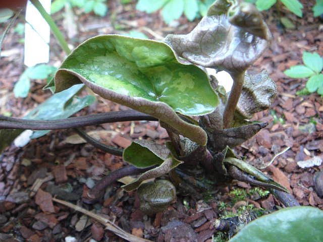 Zum Glück haben einige Asarums überlebt ,hier ist Asarum sieboldii im Austrieb....