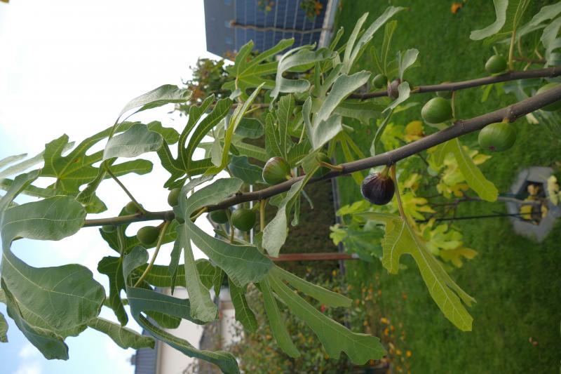 Obwohl die Feige vollsonnig steht, einen extrem lange Saison hatte und ca. 40 Feigen (2 Meter hoher Baum) angesetzt hat, reifte gerade mal eine einzige Feige vollständig aus. Es ist aber schon mehr als ein Monat her. Jetzt, wo es kalt wird, wird noch eine dunkel.