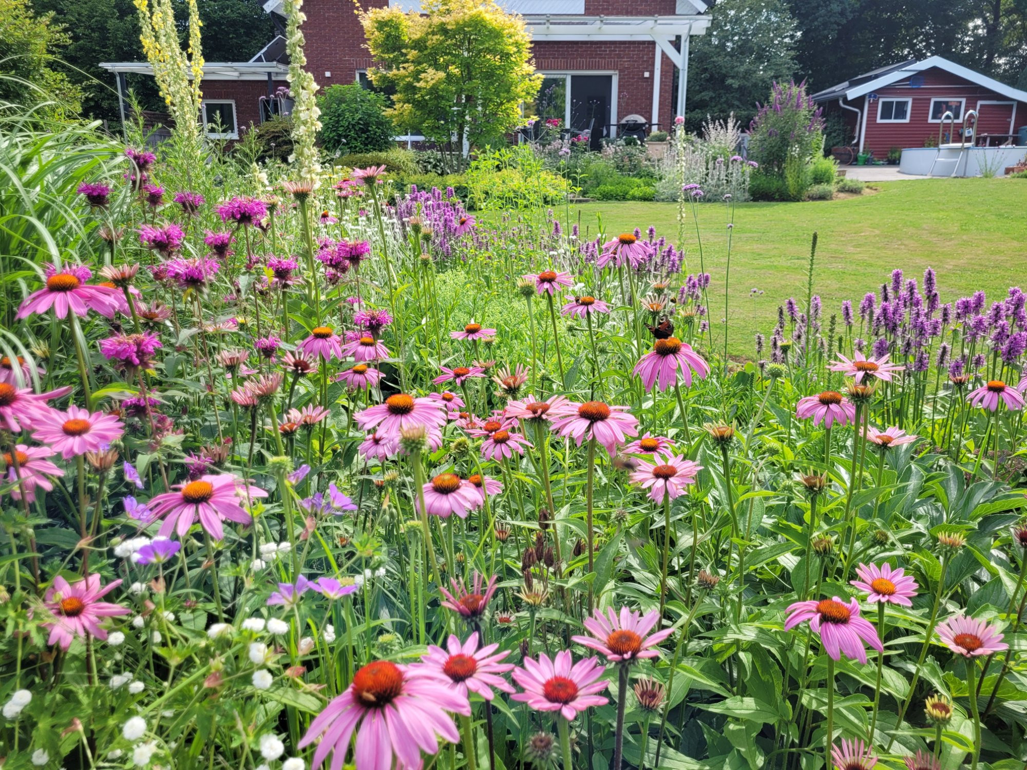 Ich zeige hier mal wie der Garten nach 2 Wochen Sommerurlaub Ende August in dem wohl schlimmsten der Dürrejahre ausgesehen hat. Völlig ohne Gießen... Der Rasen komplett braun verbrannt. Die Echinacea etwas blass um die Nase, aber am Leben. Die Staudenpflanzungen sahen insgesamt viel besser aus, als der völlig verbrannte Rasen. Der ist ganz eindeutig der Verlierer im Garten gewesen...