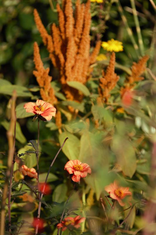 Die Kosmeen sind an die 1,70m hoch und recht wüst, tragen immer noch viele Knopsen