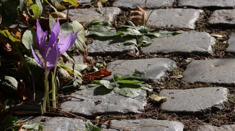 C banaticus hat sich in den Pflasterfugen des Weges eingenistet und klumpt sogar