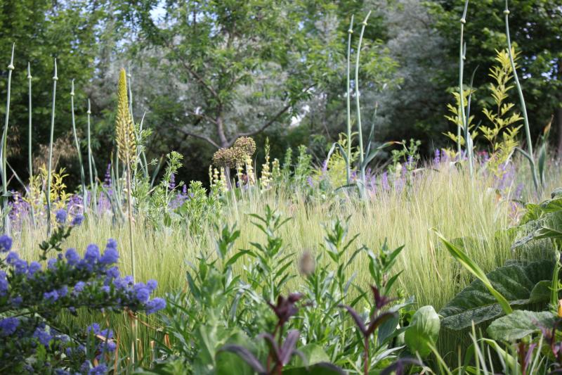 Welchen 2 Meter Lauch hast Du da gepflanzt? Rot und blau, sind das Penstemon?