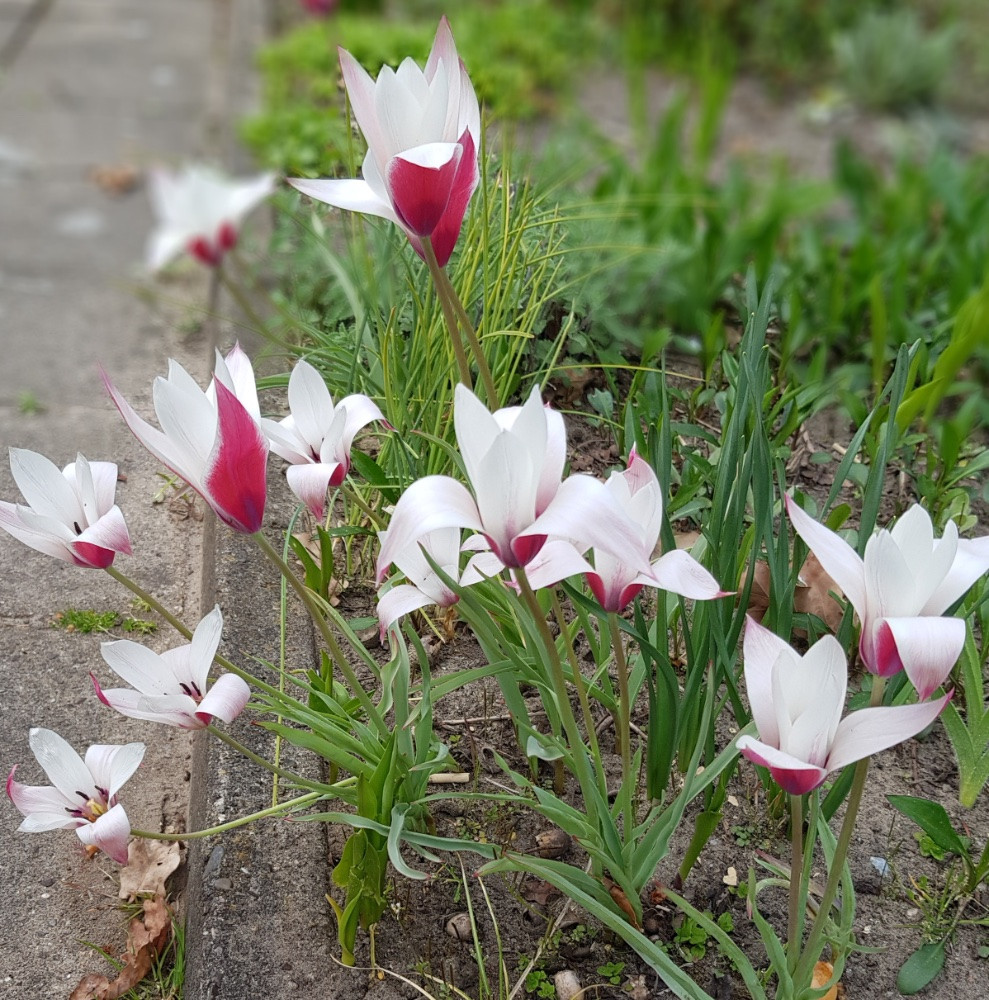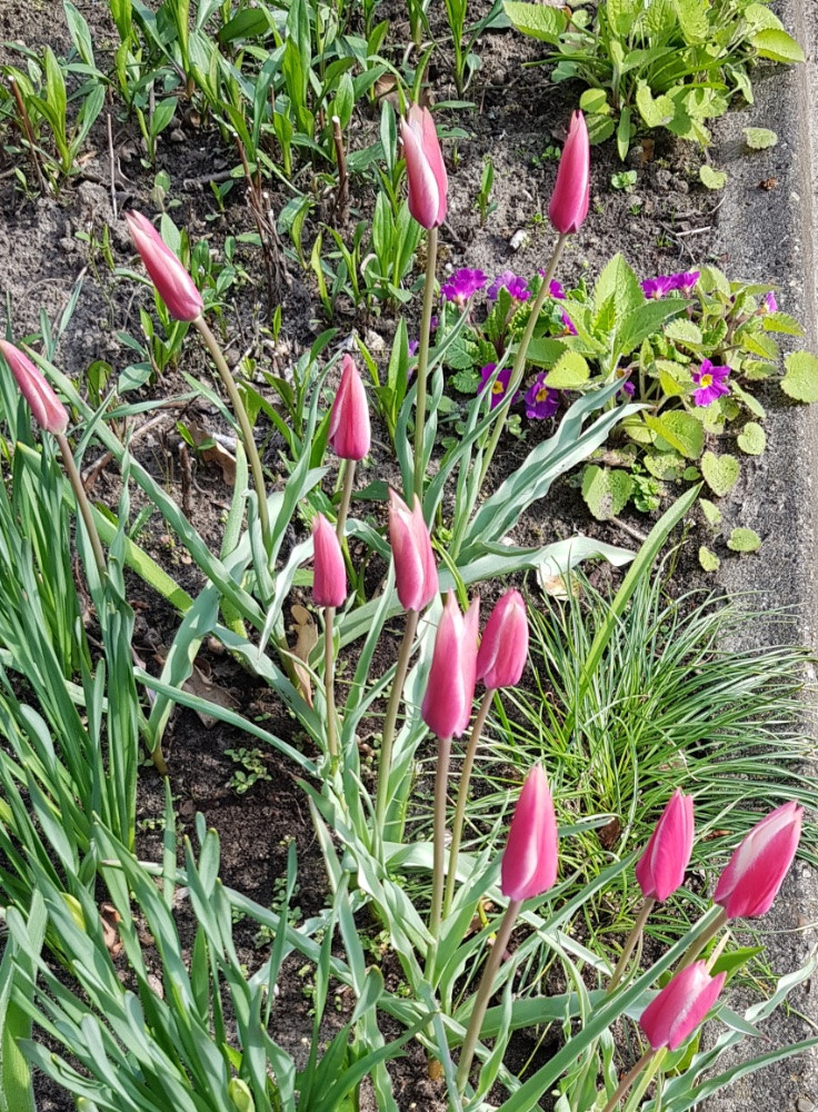 Bei kleinen, zierlichen und aus meiner Sicht sehr attraktiven Tulpen fallen mir die Honky Tonk ein, die sich hier positiv zu entwickeln scheinen.