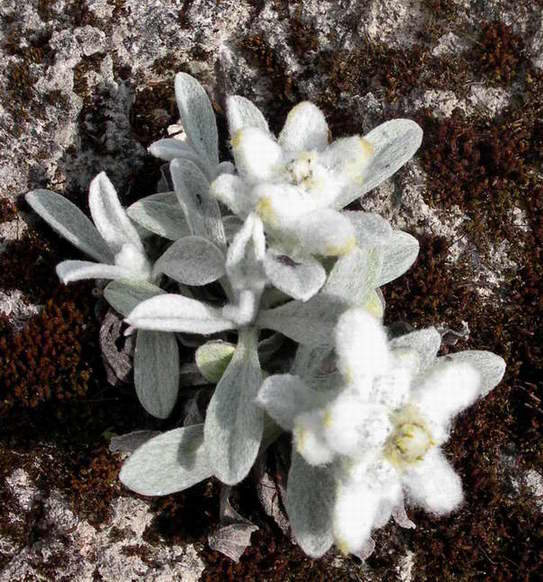 Im Tuffstein wirklich unkompliziert und auch langlebig. Das kleine weißwollige Edelweiß Leontopodium nivale kurz vor dem Aufblühen.