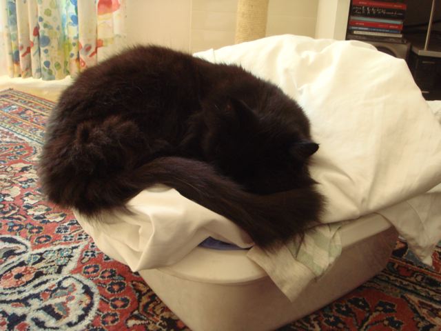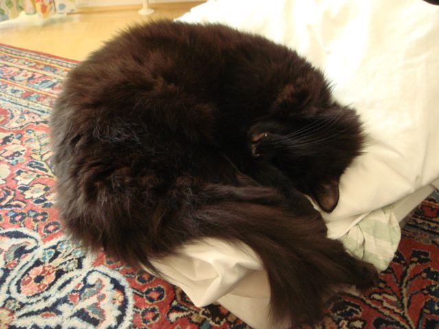 Unsere Nellie macht das auch mit Vorliebe, weshalb ich oben auf meinem Wäschestapel immer ein frisch gewaschenes Arbeitsshirt liegen habe. Da sind Haare und Krallenlöcher egal