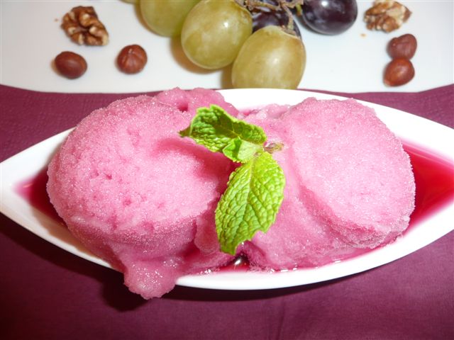 ....zum Schluss ein leichtes "Suser"-Sorbet mit TraubenSuser/Sauser ist frischer Traubensaft der bereits leicht gärt