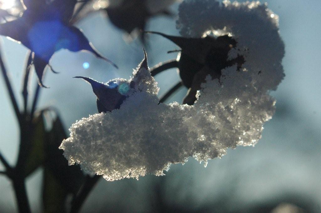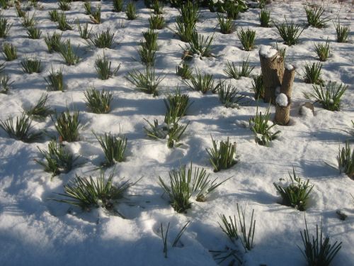 Kleine Pflanzen duckten sich unte dem Schnee wie hier zurückgeschnittene Lavendelbüsche.