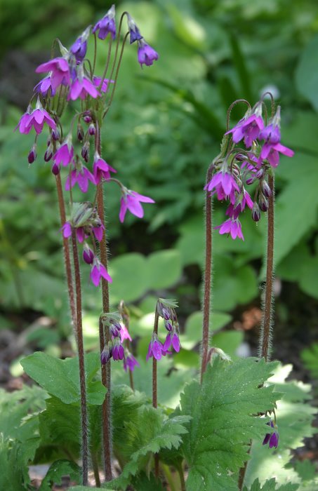 hatten wir glaube ich noch nicht im thread oder? cortusa mathioli. ich hatte die vor vielen jahren schon mal aus samen gezogen, aber wieder verloren. die neu ausgesäten entwickelten sich kräftig. vielleicht liegt's auch am mittlerweile besseren humusboden, denn sie versamt sich an manchen stellen im beet.