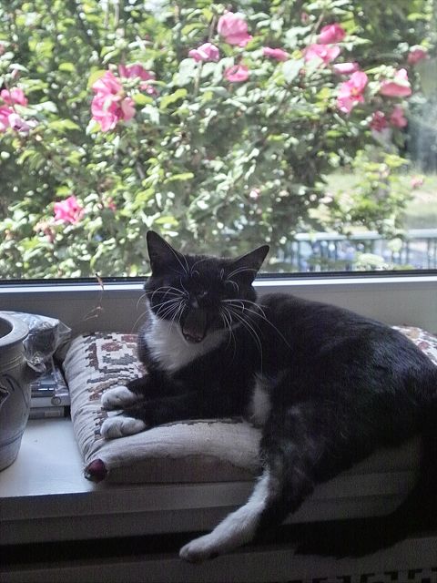 Kurze Regenpause mit strahlender Sonne. Die Katze ließ sich nicht vom Kissen locken und behielt recht: Schon wieder alles wolkig und die ersten Tropfen fallen...