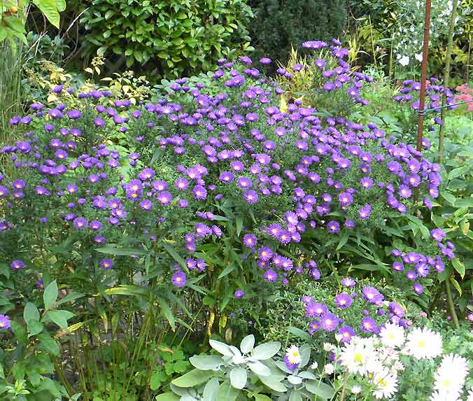 Violetta blüht bei mir deutlich früher als alle anderen n.b. Aber jetzt ist sie leider von Mehltau überzogen.Aster n b. 'Violetta', bei mir wüchsig und fast immer gesund: