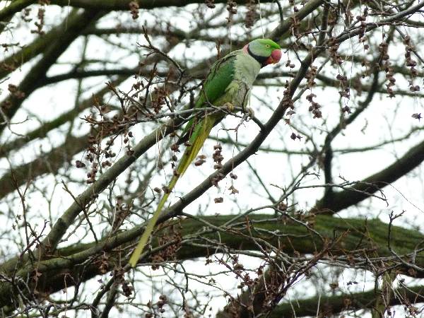 ... und hier noch die andere Sittichart aus Köln, der Große Alexandersittich, der zur Zeit nicht so häufig ist wie der Halsbandsittich.