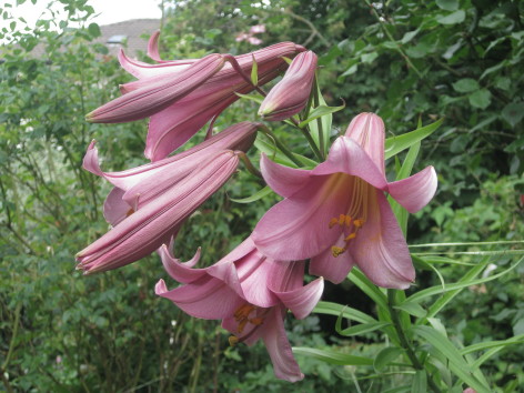 Lilium regale ?Gepflanzt 19.11.07 Blühte am 29.08.10 das 1. Mal (diesmal mit Blaukorn gedüngt)Länge der Blüte 18 cm ,Blütendurchmesser 10 cm, Länge der Pflanze 160 cmBekommT erst ab 13 Uhr Sonne,hat Bulbensigi