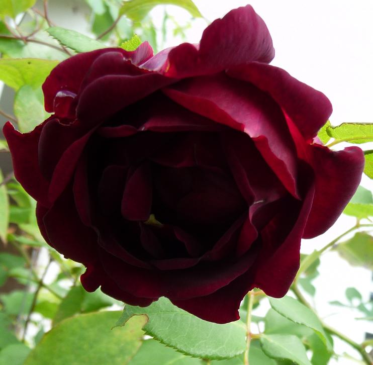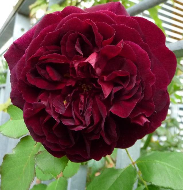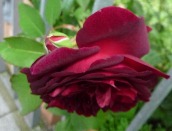 DAS ist eine wirklich dunkelrote Rose ............. einfach genial, die Farbe, außen silbrig, innen schwarzrot. Und sie duftet !!!!! Obwohl noch gar nicht ganz offen ........ wunderbarer, zitroniger Alte-Rosen-Duft. Viel schöner als ich erwartet hatte - und (man möge mir verzeihen) - viel schöner als Munstead Wood..................