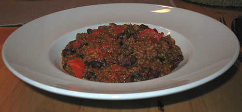 Das Foto finde ich auch toll, Emma campanula, aber deine Bilder sind eigentlich immer Klasse. Das Essen sieht auch sehr lecker aus.Und bei dir Aella bin ich sicher, dass das Gulasch auch verschwommen lecker war. Du hast so oft Endiviensalat. Lecker!!!Heute musste es schnell gehen, weil ich lange gearbeitet habe: Chili con carne aus dem TKühler, davor Schlabber-Gurkensalat