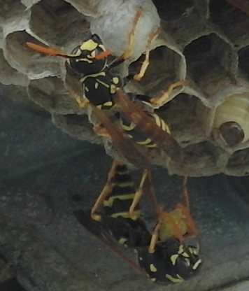 Hallo, diese Wespen haben sich in meinem Gewächshaus angesiedelt. Weiß jemand, um welche Art es sich handelt?