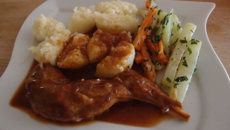 :)Hab' ich mich noch nie rangetraut.Ich hatte gestern Reste der beiden Tage vorher: Das Hühnercurry, dem ich Reste des Steinbeißers beigegeben hatte - vertrug sich sehr gut! -, diesmal mit Mie-Nudeln. Heute abend hatte ich vom Kartoffelsalat, den ich für den morgigen Grill-Besuch produziert habe.