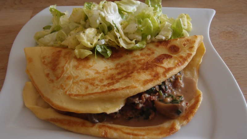 bei uns gabs;Geschnetzeltes mit Champignonsrahmsauce, Spätzle und Tomaten aus dem Ofen.( ist und bleibt eines meiner Lieblingsessen)