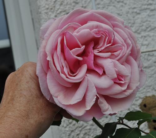 Ja, gell, es stehen viel zu viele Rosen herum, die jahrelang nicht ihren richtigen Namen wissen! Diese Blüten hängen wahrscheinlich, weil sie so gross und schwer sind. Macht aber gar nichts, das muss herrlich sein, - wenn sie nicht über den Winter erfriert, nächstes Jahr, wie ich da von unten nach oben diese vielen Blüten bewundern kann.Wenn mein Gedächtnis das auch grad nicht so hergibt, aber nach meinen anderen Bildern hängen die noch nicht ganz offenen Blüten tatsächlich.Bevor ich mich aber festlege, werde ich die nächste Saison noch abwarten und neue Fotos machen. Man soll ja nichts überstürzen.Es wäre schon schön, wenn ich ihr endlich einen Namen geben könnte.