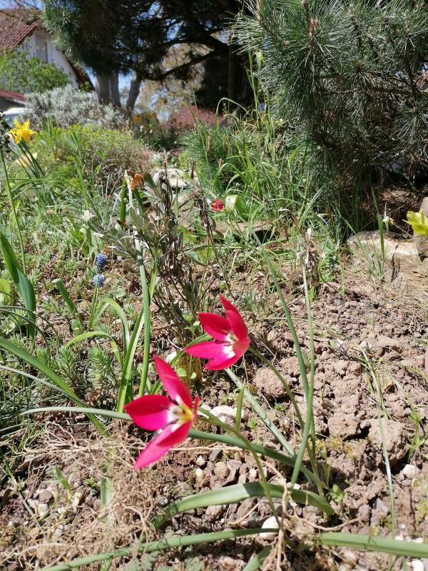 die einzige der Tulipa humilis, die im Wiesengarten bleibt und sich sogar bestockt.