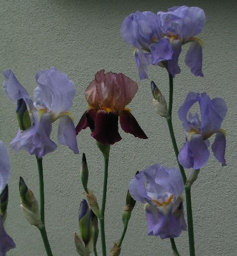 Und ganz begeistert bin ich von einem neuen Beet, daß ich im Herbst 03 angelegt habe. Es liegt auf der NordOstSeite des Hauses, ist ca. 1x3m groß und die Leitpflanzen sind verschiedene Helleboren, Hostas und im Hintergrund eben auch Bartiris. Nach vorne wird es von Monatserdbeeren eingefaßt ::)Diese verschiedenen GrünTöne der kontrastierenden BlattFormen ergänzen sich wunderbar und derzeit werden sie von den IrisBlüten getoppt. Diese ziehen sich wieder diskret in den Hintergrund zurück, wenn die Blüten der Hostas erscheinen.Geht die Zeit der Hostas zuende und ist das Laub der Iris unanattraktiv, übernehmen die Helleboren wieder die Regie, bis ...siehe Anfang 8)Eigentlich sind mir die Namen der verschiedenen Sorten nicht sooo wichtig, aber von dieser Einen, der Hellblauen auf dem Foto, wüßte ich ihn doch gerne. Denn sie duftet so wunderbar