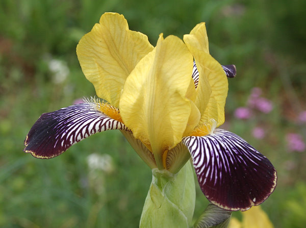 zwar züchterisch unbearbeitet aber sie macht ihrem namen alle ehre...eine bartiris...iris variegata. ich hatte sie vor vielen jahren aus samen gezogen und seitdem gibt es zwischenzeitlich einige im garten aufgelaufene sämlinge...sie streuen ziemlich...es gibt hübsche varietäten, aber auch potthäßliches....hier ein schöner sämling, der de stammform entsprechen sollte
