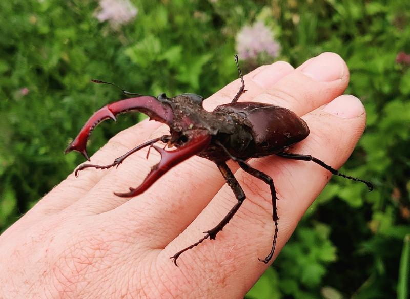 Im Wald ist mir heute eine Hirschkäferfrau über den Weg gekrabbelt.