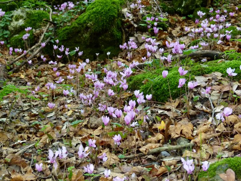 Cyclamen hederifolium am Naturstandort, in den Bergen von Nord-Sizilien (Madonie):