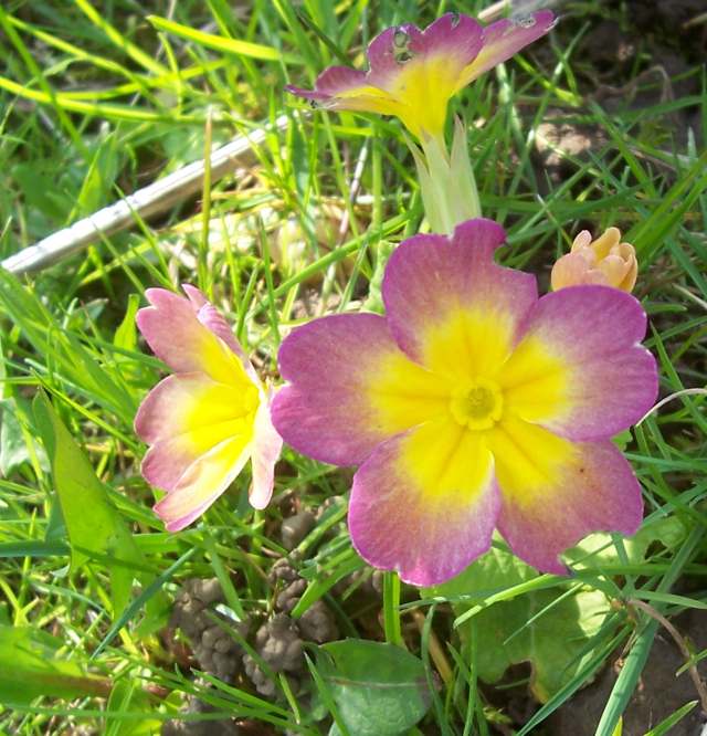 Heute habe ich mir meine Schlüsselblumen noch einmal genau angeschaut, die roten scheinen sich in der Tat ganz gut zu vermehren. Dabei ist mir auch eine schwefelgelbe Primula veris aufgefallen - das gleiche Gelb, das ansonsten die Primula elatior hat. Auch eine dunkelgelbe Form habe ich gefunden. Es sind jeweils die einzigen mit derart deutlichen Farbabweichungen, die werde ich mal im Auge behalten. :) Zum Vergleich eine Gegenüberstellung mit der normalen gelben in der Mitte: