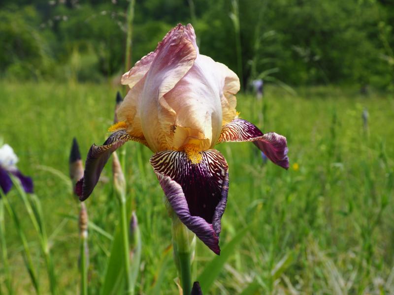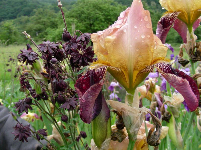 :D mir ist dieser violette Hauch auf den Hängeblättern unterhalb des Bartes aufgefallen. Den hat die Sorte Trails West 1986 Schreiner in wiki.irises auch. Das wird als "metallic halation" bezeichnet. Diesen violetten Hauch hat die Iris von Ingeborg auch auf dem Dom.