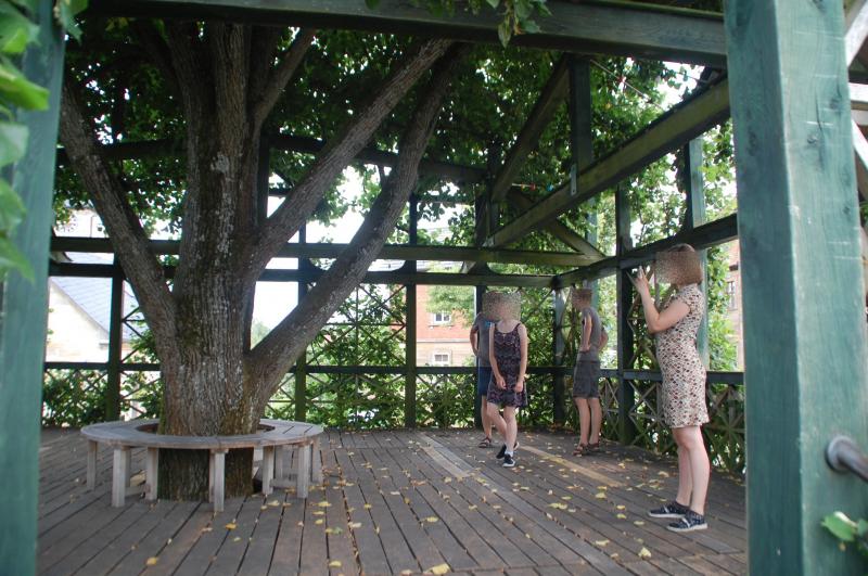 Peesten war unser letzter Anlaufpunkt für auffallende Gehölze. Diese Linde wurde 1951 am historischen Platz neu gepflanzt. 2001 konnte die Plattform dann endlich wieder aufgebaut werden. Sie ist auch heute noch begehbar und irre groß :o.