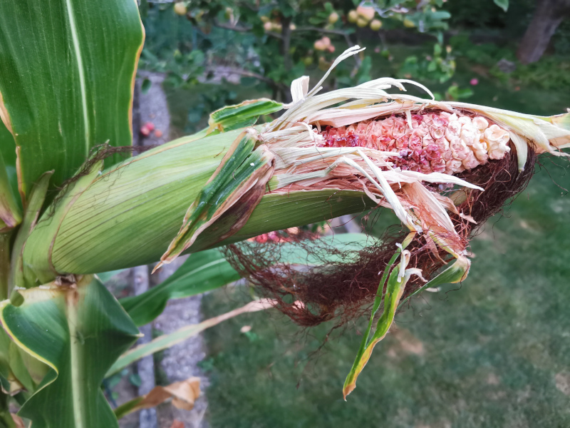 Ich bin hier mit dem roten Ungarischen Riesenmais noch am ausdiskutieren mit den Mäusen, Ratten oder Alexandersittichen was für wen übrig bleibt.