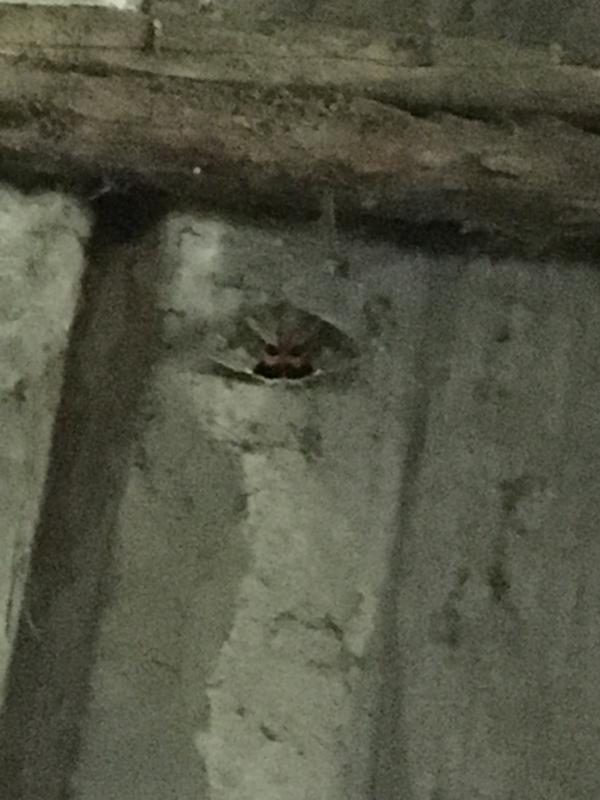 Ich weiß, das Foto ist mies - der Herr oder die Dame wollte mich partout nicht näher heranlassen, ich hab ihn im Schuppen aufgescheucht, er war mir aber gestern Abend nach Einbruch der Dunkelheit schon aufgefallen, ein sehr großer Nachtfalter, was man auf meinem Foto nicht sehen kann, hinten zwischen den großen Flügeln schienenzwei orange-rötliche Flecken auf, als er nicht ganz in Ruhestellung war.