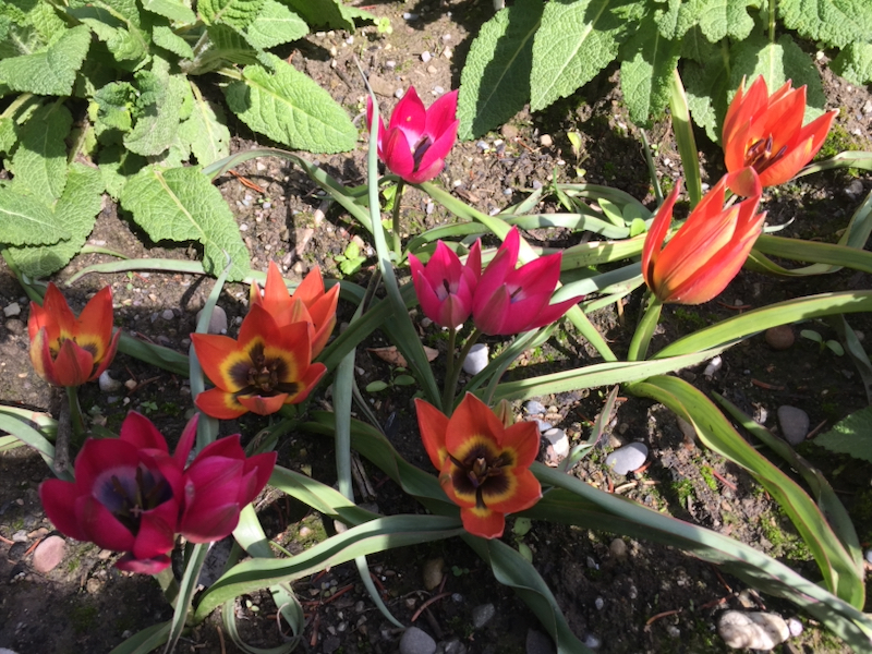 Kasbek hat mir im Herbst (wieder einmal) einige spannende Tulpenzwiebeln überlassen. Ziemlich spät erscheint hier jetzt Tulipa dasystemonoides, die völlig anders wirkt als T. dasystemon. Leider werde ich sie nicht in voller Blüte sehen, weil wir ein paar Tage weg sind.